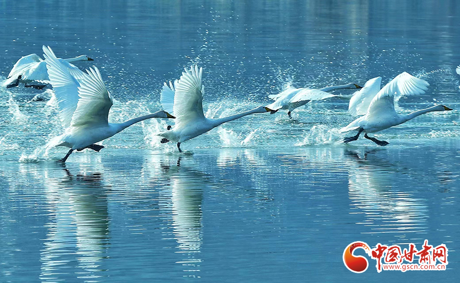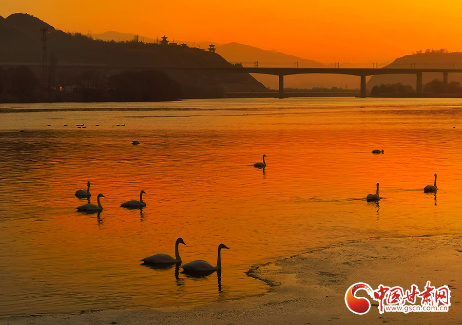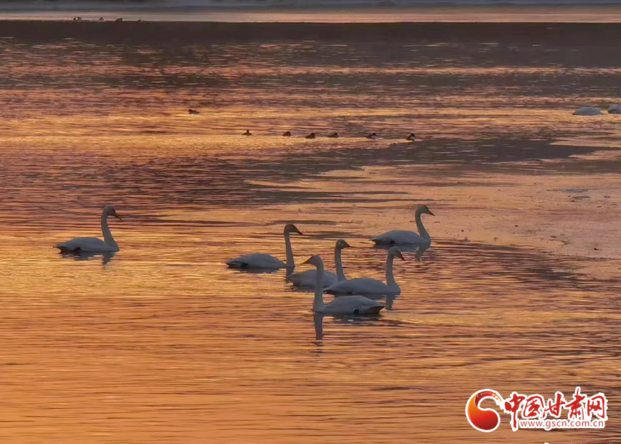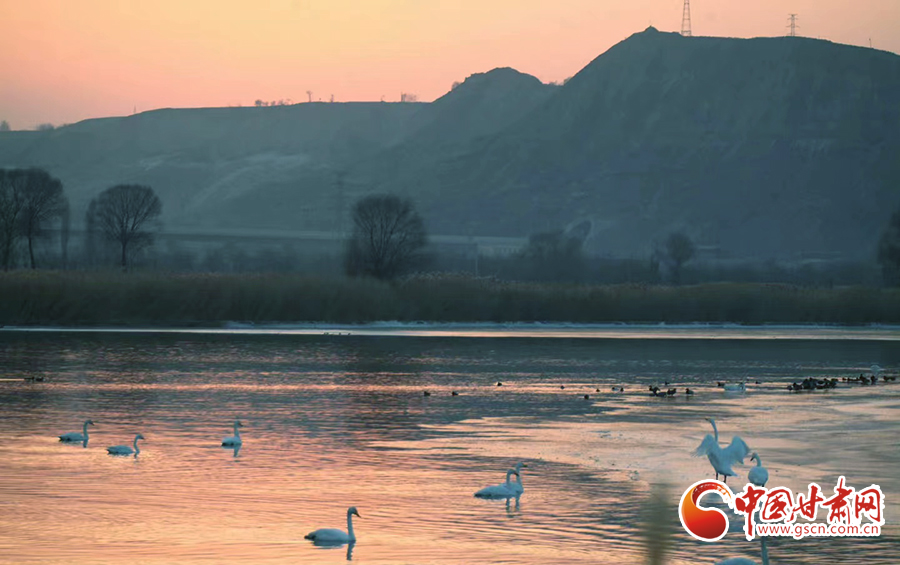 近日,位于蘭州市西固區(qū)達川鎮(zhèn)的三江口天鵝灘,陸續(xù)飛來天鵝越冬。在一平如鏡的水域,它們或安靜地棲息,或在水中暢游。