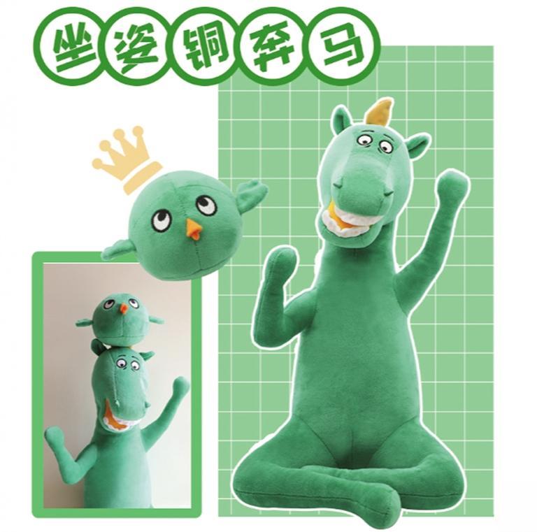 銅奔馬毛絨玩具有“一馬當(dāng)先銅奔馬”站姿款和“馬到成功銅奔馬”奔跑款兩種款式。兩款玩偶形象萌趣立體,表情俏皮生動(dòng),做工精致細(xì)膩,手感柔軟舒適有彈性,深得大家喜愛(ài)。它的創(chuàng)意原型來(lái)自甘肅省博物館的鎮(zhèn)館之寶——銅奔馬。銅奔馬出土于甘肅省武威市雷臺(tái)漢墓,距今已有2000多年的歷史,是中國(guó)旅游標(biāo)志物,也是古絲綢之路最具代表性的歷史文物載體。