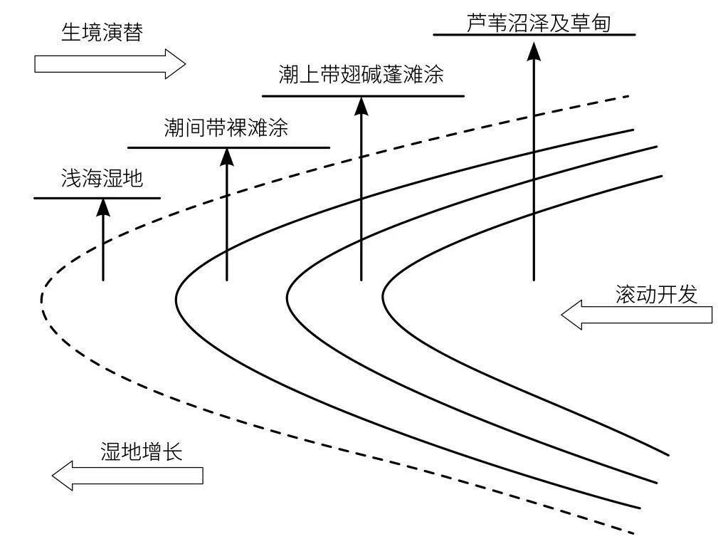 識(shí)別海平面上升和濱海濕地圍墾影響下,濱海濕地生態(tài)系統(tǒng)潛在陸向遷移通道及其遷移格局,劃定適應(yīng)海平面上升的預(yù)留藍(lán)線。