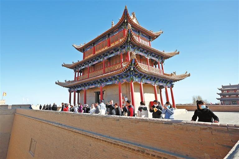 3月4日,游客在嘉峪關(guān)關(guān)城景區(qū)參觀游覽。春暖復(fù)蘇,甘肅省不少古絲綢之路節(jié)點(diǎn)城市喜迎旅游開門紅。在擁有世界文化遺產(chǎn)的甘肅省嘉峪關(guān)市,歷史文化古跡、現(xiàn)代主題樂(lè)園、夜市等景點(diǎn),都吸引了不少游客前來(lái)游覽體驗(yàn)。今年以來(lái),當(dāng)?shù)赝瞥鑫穆孟M(fèi)券、景點(diǎn)優(yōu)惠套票、獎(jiǎng)補(bǔ)扶持政策等一系列措施,提振文旅消費(fèi)市場(chǎng)信心,助推絲路文旅產(chǎn)業(yè)強(qiáng)勁復(fù)蘇。