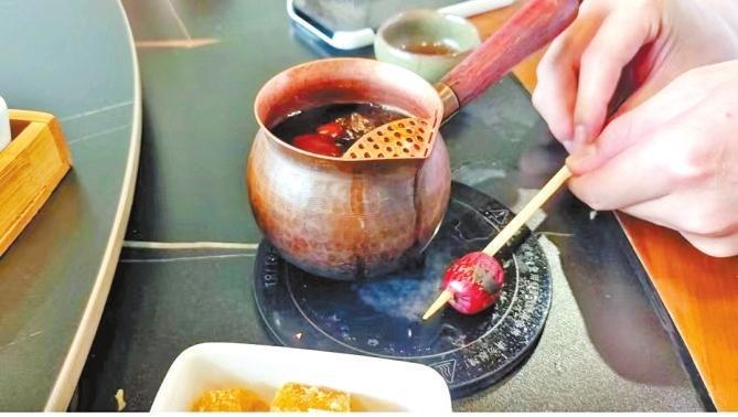 “‘茶圣’陸羽的《茶經(jīng)·五之煮》記載,煮茶的時候會放蔥、姜、棗、橘皮、茱萸、薄荷等佐料,所以現(xiàn)在罐罐茶所添加的配料,如紅棗、枸杞、桂圓、葡萄干、菊花、冰糖等,其實就是最原始的煮茶法的延續(xù)。”唐陳虓說。