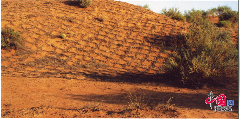 小小的“麥草方格”不僅阻止了流沙,防止了荒漠化,還加速了當地經濟的發(fā)展。“麥草方格”固沙法即:將廢棄的麥草呈方格狀鋪在沙面上,然后用鐵鍬軋進沙中,留麥草的三分之一或一半立在四周,并在方格中植入治沙人經九次試驗成功培育出的花棒、檸條等沙生植物,腐爛干枯的麥草還作為肥料滋養(yǎng)植物的生長。
