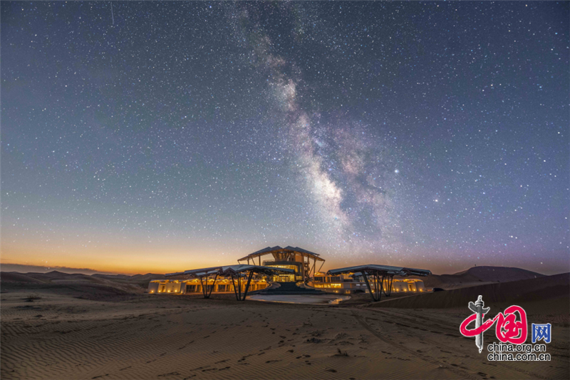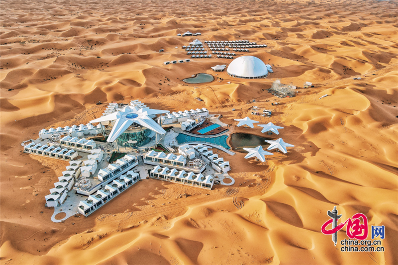 沙坡頭旅游區(qū)依托良好的生態(tài)資源,打造了國內首個以沙漠觀星為主題打造的酒店——星星酒店,在蒼茫遼闊的沙漠之中,這座造型獨特的酒店仿佛星星一般,閃爍其中。