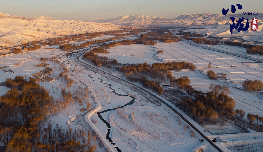 在白雪覆蓋下,遠(yuǎn)山、田野、屋舍、樹木,構(gòu)成冬日里最美畫面。