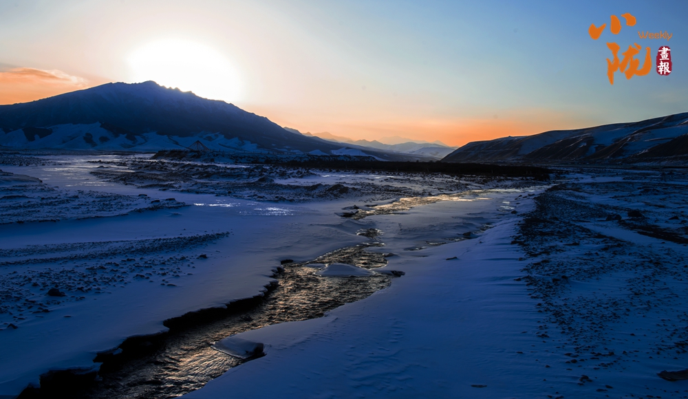 清晨時(shí)分,安靜的村落里升起裊裊炊煙,朝霞、山巒、冰河融為一體,詩意盎然,剔透著一派水墨丹青的韻味。