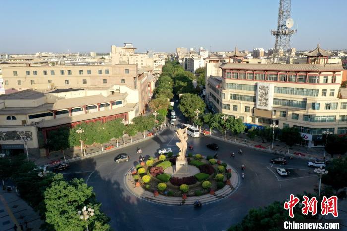 圖為敦煌城市內(nèi)一景,敦煌城標(biāo)——反彈琵琶。(資料圖)張曉亮 攝