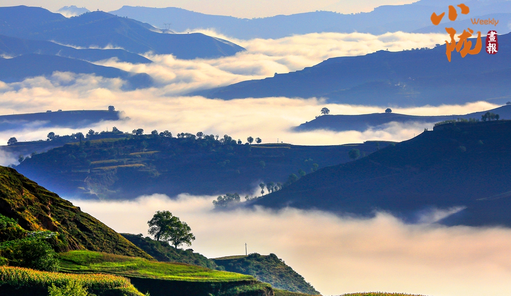 在旅游大通道積石山段遠(yuǎn)眺,云霧穿山飄過(guò),遠(yuǎn)處的村莊和梯田時(shí)隱時(shí)現(xiàn),遠(yuǎn)山近嶺,草樹(shù)煙村......置身其中,仿佛步入了人間仙境。
