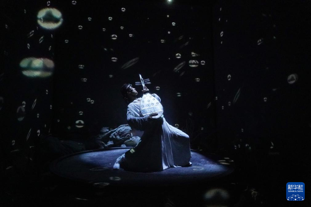 1月21日,在甘肅省敦煌市,演員在大型洞窟式沉浸體驗劇《樂動敦煌》中表演。新華社記者 馬希平 攝