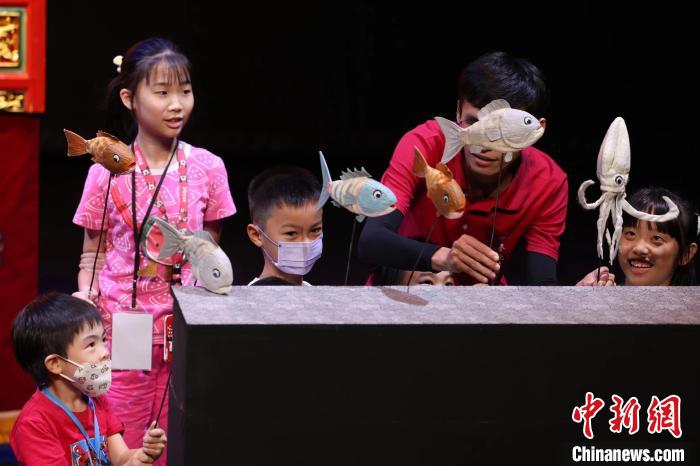 7月10日,臺灣傳統(tǒng)藝術(shù)中心2024兒童戲曲巡演活動(dòng)“請囡仔來看戲”在臺北起跑。圖為臺北木偶劇團(tuán)在記者會(huì)現(xiàn)場為兒童表演。(臺灣傳統(tǒng)藝術(shù)中心 供圖)