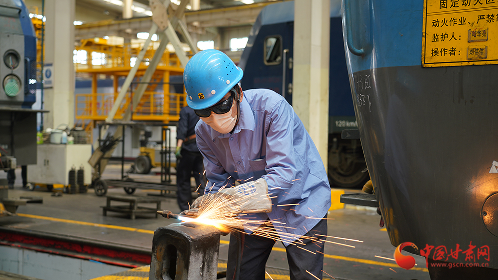 身穿長袖工作服、腳蹬勞保鞋、頭戴藍色安全帽,手上戴著電焊專用防護手套……蘭州鐵路局蘭州西機務段西整備車間電焊班組內(nèi),鐵路“焊將”劉偉偉在火花四濺、煙霧彌漫的工作臺位間來回穿梭,一點一點對機車車鉤鉤尾墊進行焊修。