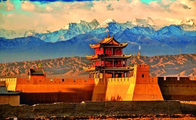 雄關(guān)六百載,長城越千年??唇癯?,戈壁之上,嘉峪關(guān)關(guān)城的朱色城樓與終年皚皚的祁連雪峰交相輝映,歷經(jīng)風(fēng)霜久而彌堅(jiān);峭壁之巔,長城第一墩矗立于此,腳下流淌的討賴河水澎湃不息;山脊之上,懸壁長城形似凌空倒掛,氣勢雄偉。