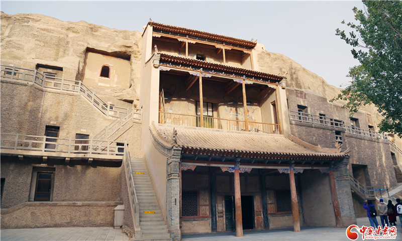 據(jù)敦煌研究院資料顯示,石窟以彩塑為主體,四壁及頂均彩繪壁畫,地面漫鋪花磚,窟外有窟檐(或殿堂)、棧道,窟窟相通相連,是以石窟建筑、彩塑和壁畫三者合一的佛教文化遺存。