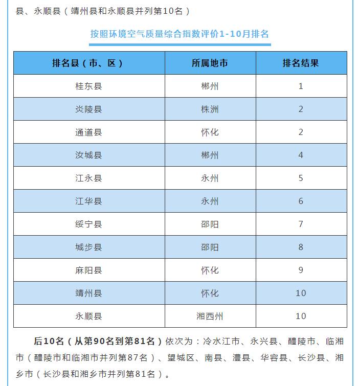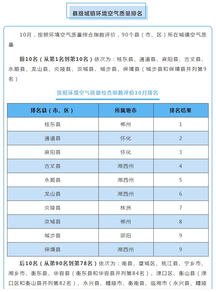 原標(biāo)題:10月湖南環(huán)境空氣質(zhì)量:湘西張家界位居前茅