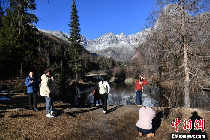 12月2日,位于四川省阿壩州小金縣的四姑娘山雙橋溝吸引游客游覽。隨著冬季到來,四姑娘山雙橋溝多座山峰被皚皚白雪覆蓋,紅葉、雪山倒映在清澈的湖面形成一幅美麗畫卷,冰雪旅游逐漸火熱。中新社記者 張浪 攝