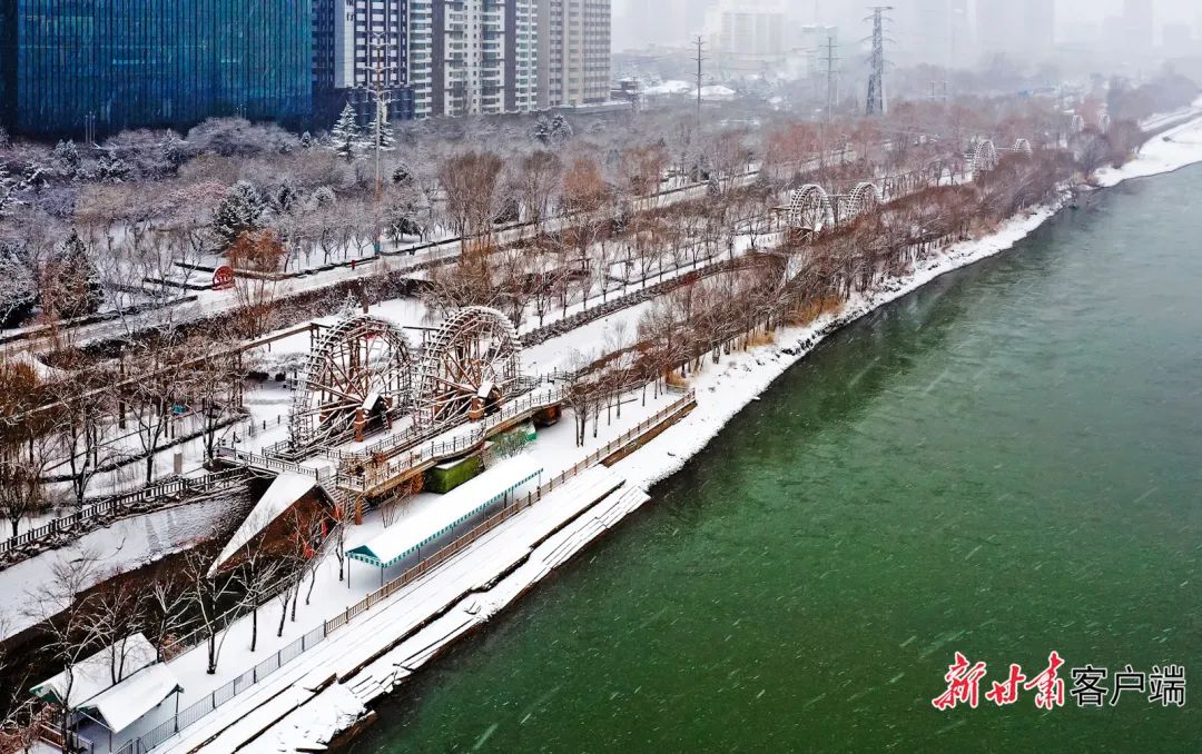 蘭州黃河兩岸銀裝素裹,美不勝收。新甘肅·甘肅日報記者 孟捷