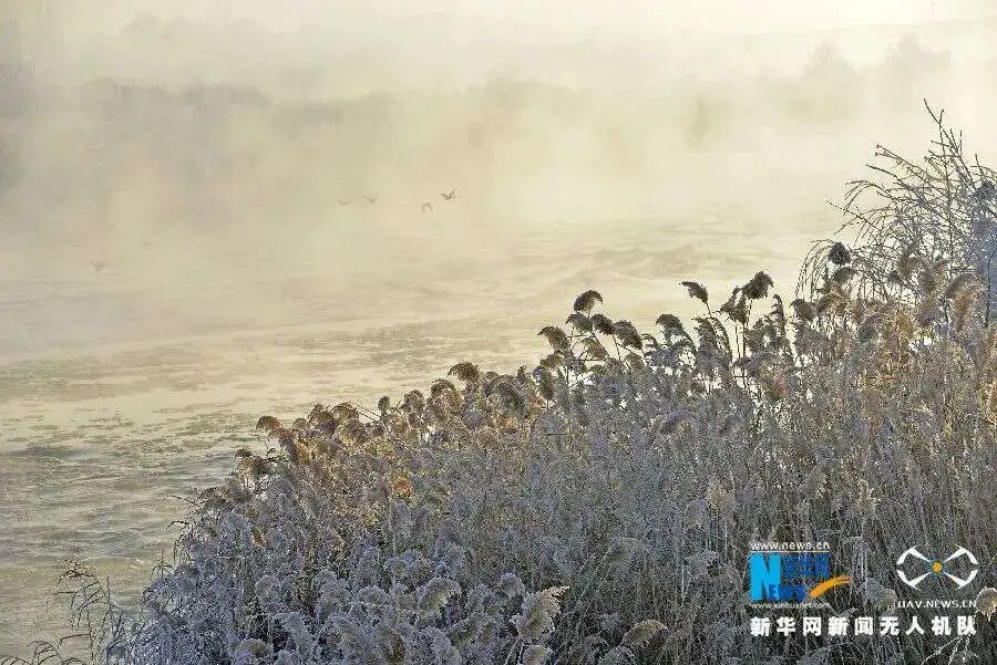 寒冬里,日出時分,這里霞光綻放,萬物蘇醒,兩岸的霧凇冰清玉潔,上演晨間浪漫。