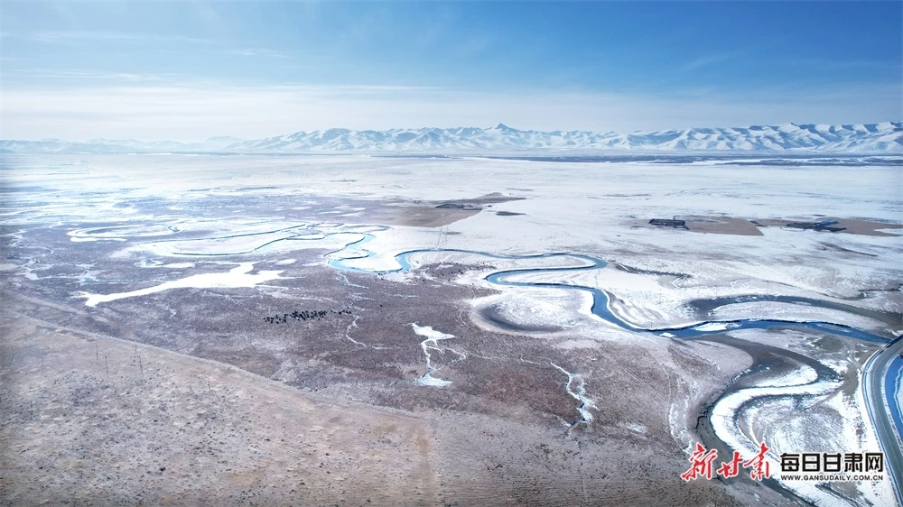 雪后的阿萬倉濕地遼闊壯美。新甘肅·每日甘肅網(wǎng)通訊員 劉瑞祥