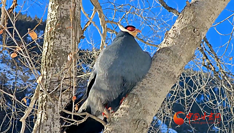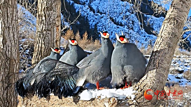 祁連秘境上演藍(lán)馬雞家族雪地“聚會”