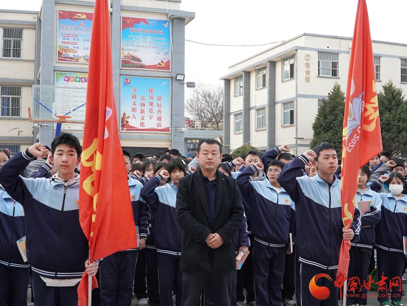 上午8時(shí)30分,華池縣列寧學(xué)校內(nèi)莊嚴(yán)肅穆,華池縣柔遠(yuǎn)初中、華池二中、城壕初中、山莊初中、列寧學(xué)校師生及各界代表懷著崇敬的心情列隊(duì)集合,舉行出征儀式。5所學(xué)校16支先鋒隊(duì)被授予“紅色傳承先鋒隊(duì)”旗幟,隨后師生代表吹響沖鋒號(hào)揮旗出發(fā),開啟這場(chǎng)特別的旅程。