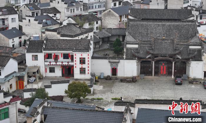 圖為3月30日航拍村中保存完好的古民居。(無人機照片)中新社記者 韓蘇原 攝