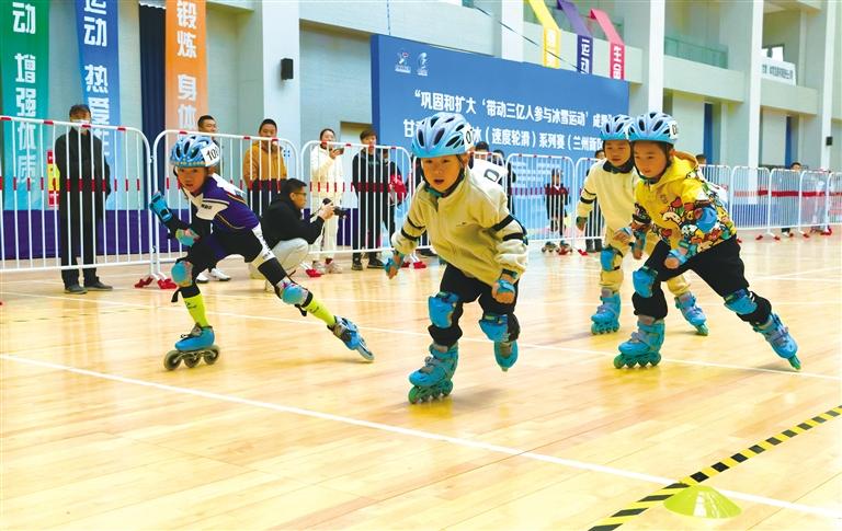 4月12日,“鞏固和擴大‘帶動三億人參與冰雪運動’成果”甘肅省速度滑冰(速度輪滑)系列賽(蘭州新區(qū)站)在甘肅省體育館開賽。