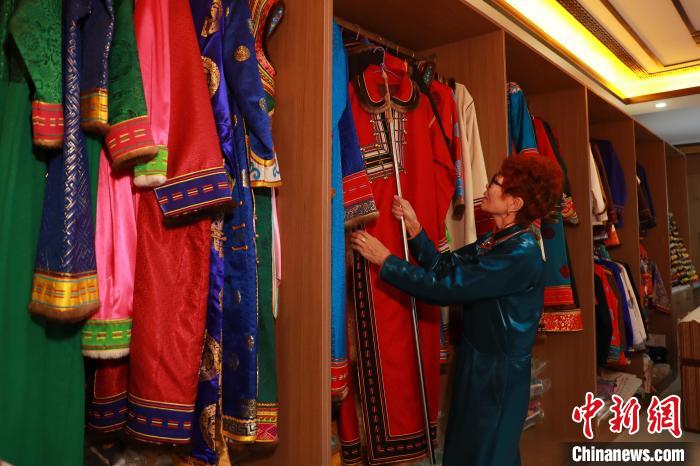 7月初,甘肅省酒泉市肅北蒙古族自治縣非遺館內(nèi),蒙古族服飾非遺代表性傳承人娜仁其其格正在手工縫制傳統(tǒng)蒙古族服飾,吸引游客駐足觀賞、體驗。肅北是甘肅唯一以蒙古族為聚居區(qū)的民族自治縣,也被稱為雪山蒙古族。一針一線的手工技藝展示著蒙古族服飾的傳統(tǒng)之美。陳坤 攝