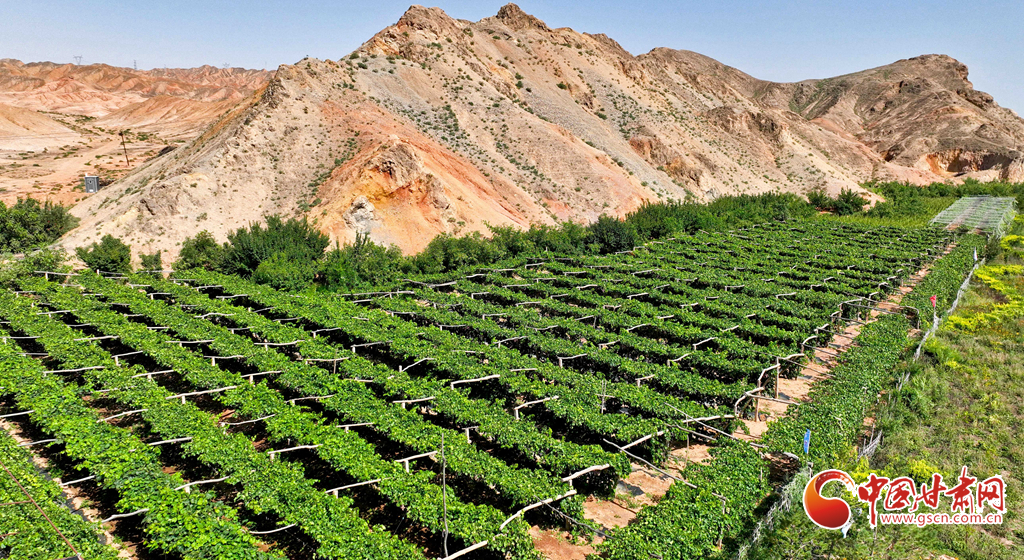 位于巴丹吉林沙漠南緣的臨澤縣,境內(nèi)沙漠、戈壁面積占三分之二以上。近年來(lái),當(dāng)?shù)夭捎米o(hù)、封、造、固等措施進(jìn)行荒漠綜合治理和實(shí)施“三北”工程,營(yíng)造林木273萬(wàn)畝,修復(fù)退化草地874萬(wàn)畝。鄰近北部沙漠的板橋鎮(zhèn)積極探索荒漠戈壁上的“綠色革命”,在實(shí)施“三北”防護(hù)林建設(shè)工程的同時(shí)大力發(fā)展特色林果業(yè),建成1.5萬(wàn)畝葡萄種植基地,昔日“黃龍”肆虐的北部荒漠區(qū),正在成為綠樹(shù)成蔭、果實(shí)累累的綠色美麗家園,林果業(yè)成為了當(dāng)?shù)厝罕娫鍪罩赂坏闹髑馈?/p>