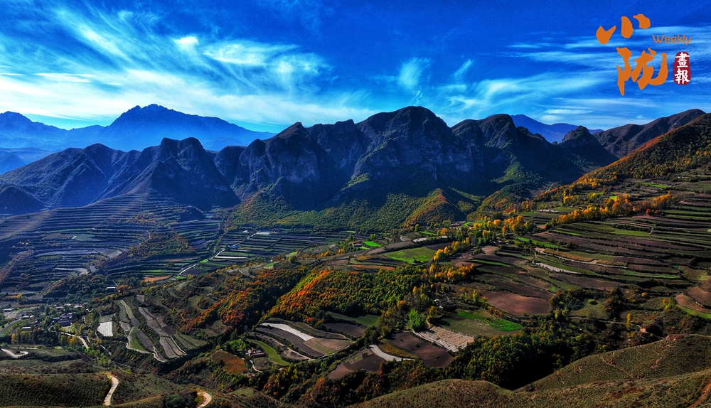 巍峨群山,連綿橫亙。古樸的村莊,山上的樹木,豐收的田地,如同披上了姹紫嫣紅的霓裳,顯得更加寧靜溫暖。