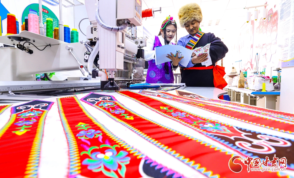 1月18日,祁連山下寒風(fēng)凜冽,張掖市肅南裕固族自治縣的非遺傳承技藝大師工作室內(nèi)卻氣氛熱烈。非遺傳承技師潘小紅和楊海燕正帶領(lǐng)民族服飾愛好者,學(xué)習(xí)數(shù)字全自動(dòng)刺繡、數(shù)字印花、全自動(dòng)燙金、數(shù)字智能縫紉、數(shù)字包邊、裁切及AI智能圖案設(shè)計(jì)等民族服裝智能化制作技藝。
