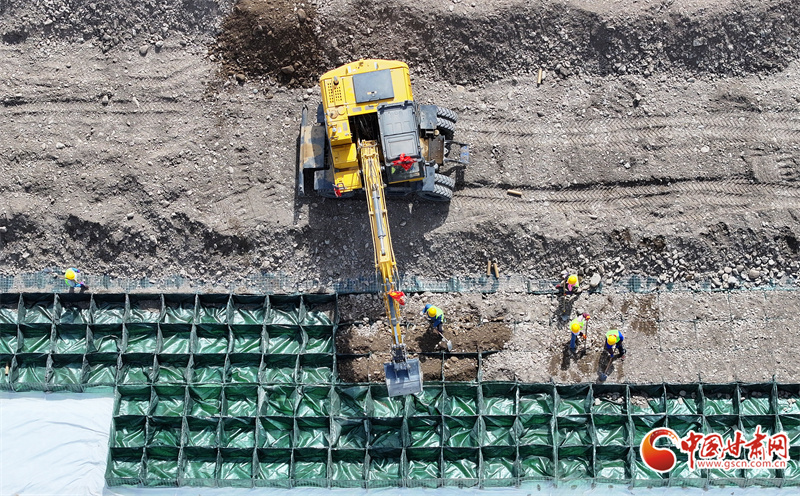 民樂縣大堵麻河防洪治理工程項目施工現(xiàn)場,工人們正在緊張有序地修筑河堤