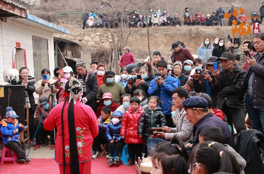臺(tái)前演員投入表演,臺(tái)下不少村民舉著手機(jī)記錄這熱鬧場(chǎng)景。古樸的民居、山坡上攢動(dòng)的人頭,伴著戲曲的唱腔,滿(mǎn)是傳統(tǒng)民俗活動(dòng)的鮮活勁兒,盡顯民間藝術(shù)的感染力。