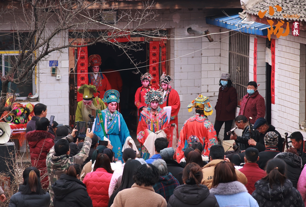 民居門(mén)口的舞臺(tái)上,多位扮相精致的演員依次亮相,或持扇或執(zhí)巾,唱腔婉轉(zhuǎn)、身段靈動(dòng)。臺(tái)下村民圍得水泄不通,不少人舉著手機(jī)定格精彩瞬間,伴奏的鑼鼓弦樂(lè)聲里,滿(mǎn)是濃郁的鄉(xiāng)土氣息。